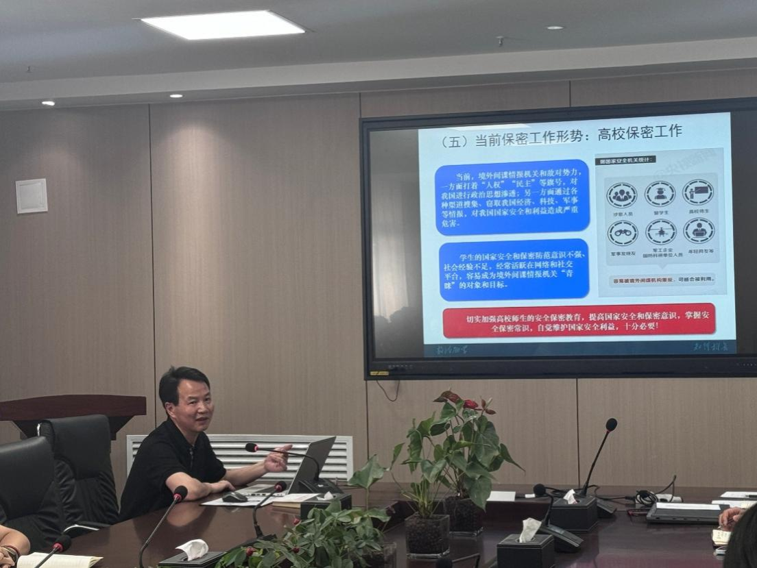 为进一步强化师生国家安全意识和保密责任意识,推动校园安全保密工作走深走实,tyc122cc太阳成集团于5月6日下午在教8-613报告厅召开安全保密月专题党课。党课由公司党委书记蔡长龙主讲。