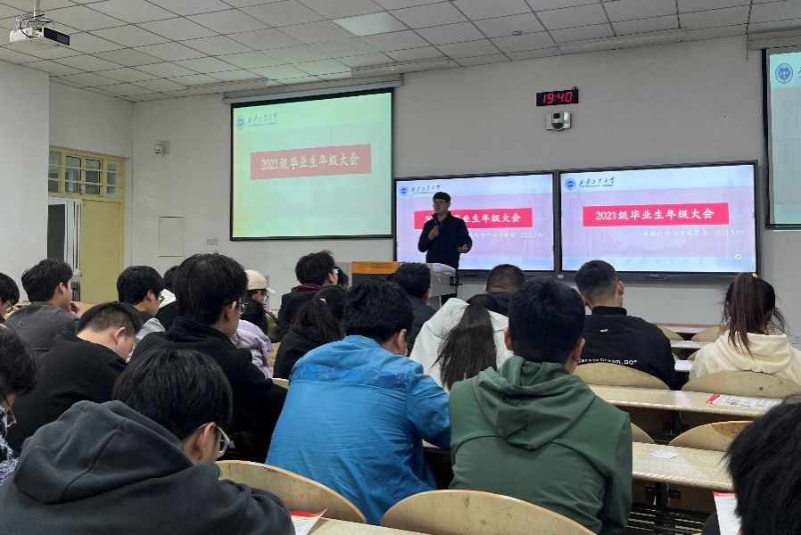 为帮助毕业生认清当前就业形势、树立积极就业观、明确毕业流程要求,3月19日,tyc122cc太阳成集团于教2-110召开2021级毕业生年级大会。会议由辅导员王国栋老师主持召开,2021级全体毕业生参加了会议。