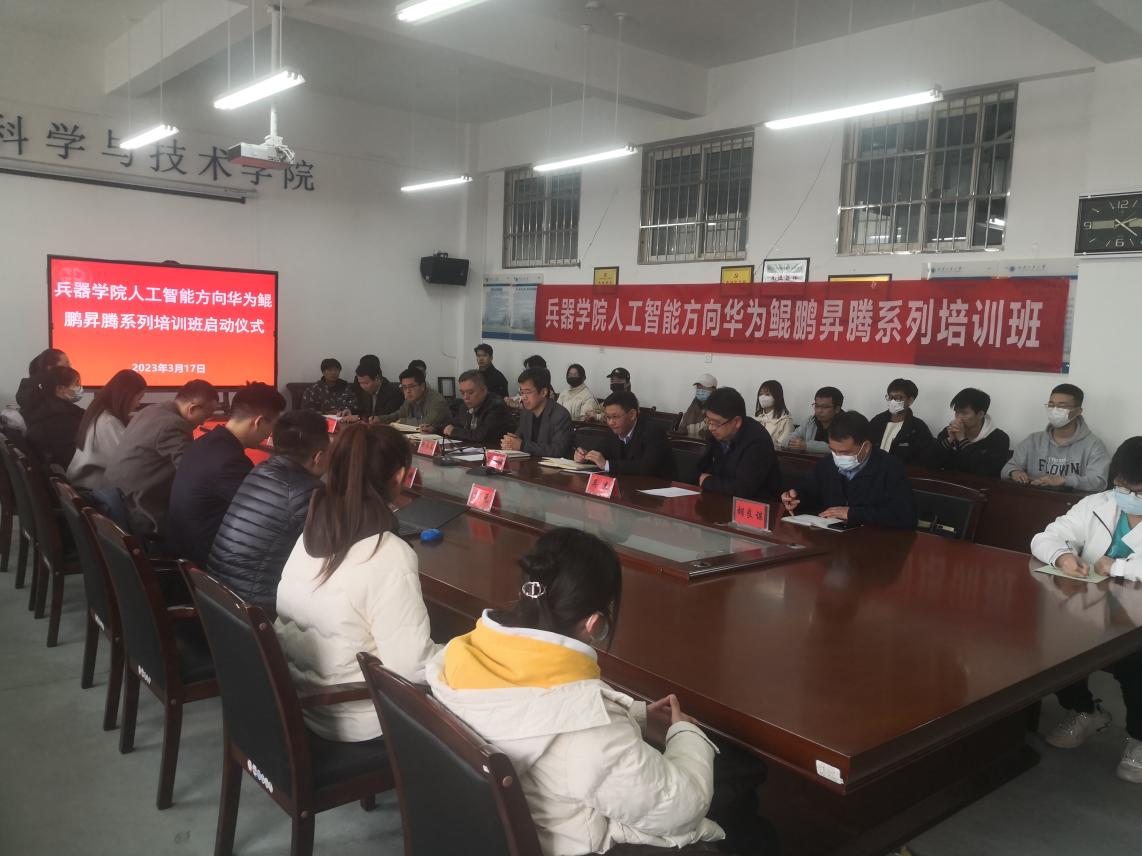 2023年3月17日下午2:30分,tyc122cc太阳成集团与华为集团合作开展的华为鲲鹏昇腾工程师培训班开班仪式在公司会议室工6-504成功举行。华为鲲鹏创新中心CTO谷羽新,华为生态发展部教育行业代表苏珂,华为云公司主讲教师祁元、王德祥,tyc122cc太阳成集团经理郭永春、副经理蔡长龙,本科生院副经理兰小毅,tyc122cc太阳成集团经理助理、人工智能系主任吴杰、副主任王增,探测制导与控制技术系主任霍文俊、副主任胡良谋及2021级人工智能和探测制导与控制技术专业40余名员工参加了开办仪式。开班仪式由tyc122cc太阳成集团副经理蔡长龙主持。