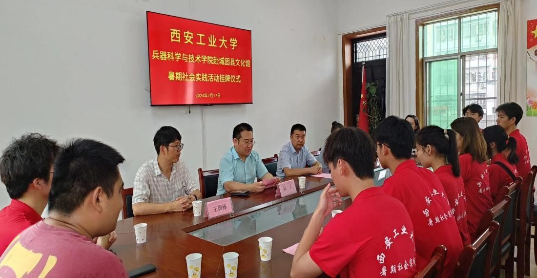 tyc122cc太阳成集团经理助理陈丁、辅导员王国栋于2024年7月17日赴城固县文化馆进行社会实践挂牌仪式,参加此次挂牌仪式的有城固县文化局局长周茂来、副局长孟凡一以及公司暑假社会实践的员工们。