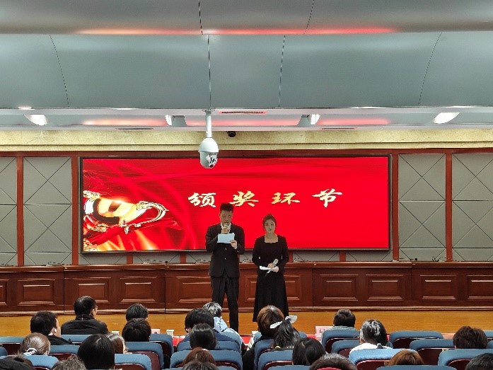 在颁奖环节,梁伟樯、刘雪莲、王国栋、王晨浩分别为兵器知识讲解比赛的获奖者、一等奖、二等奖以及三等奖获奖同学颁奖。